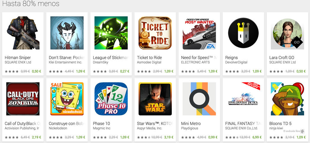 La Google Play ofrece descuentos de hasta el 80 % en juegos seleccionados. La mayor parte de ellos con mucha calidad: vale la pena comprarlos a este precio.