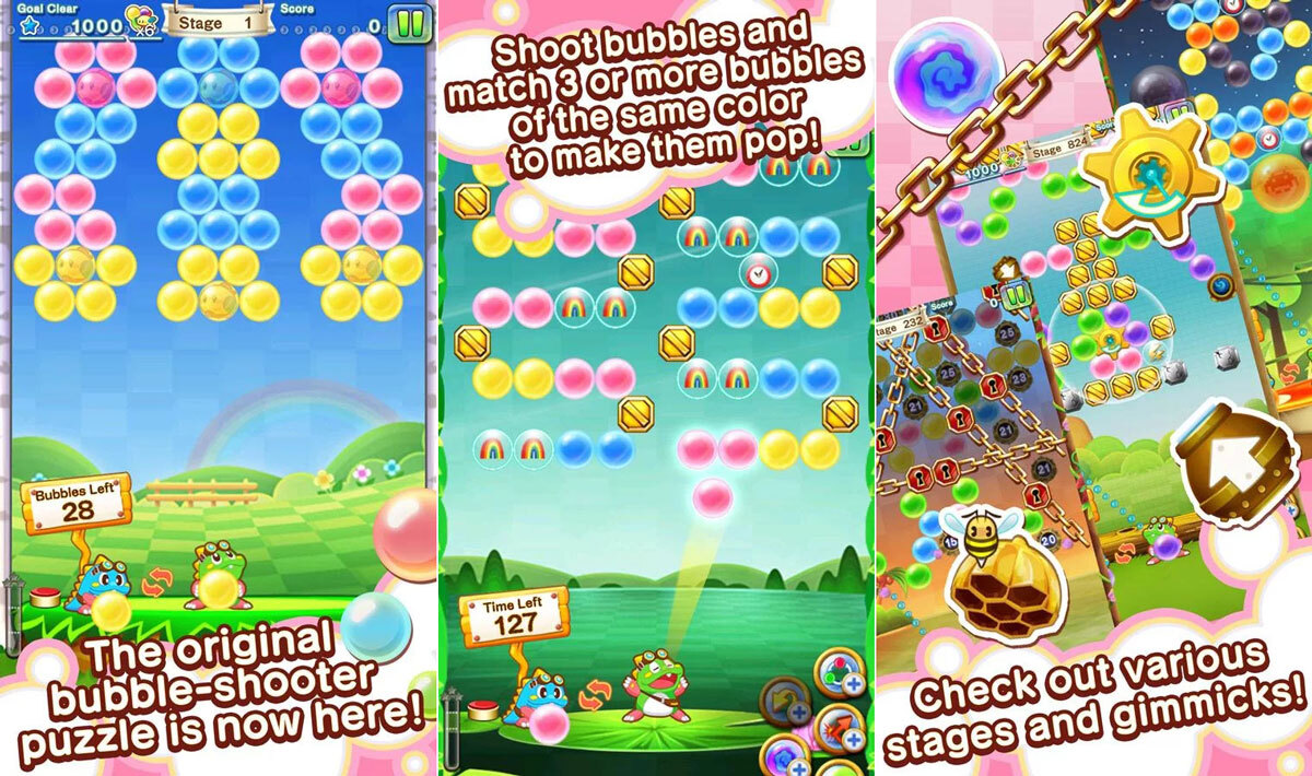 Todos conocemos los clásicos juegos de burbujas, estos en los que tenemos que disparar una burbuja de color para juntarla con el mismo color. Existen miles de juegos que siguen esta premisa para cualquier plataforma que se nos venga a la cabeza. Los smartphones con Android no son ninguna excepción a esta regla, Google Play está llena de esta clase de juegos. Pero esta moda comenzó con Puzzle Bobble.