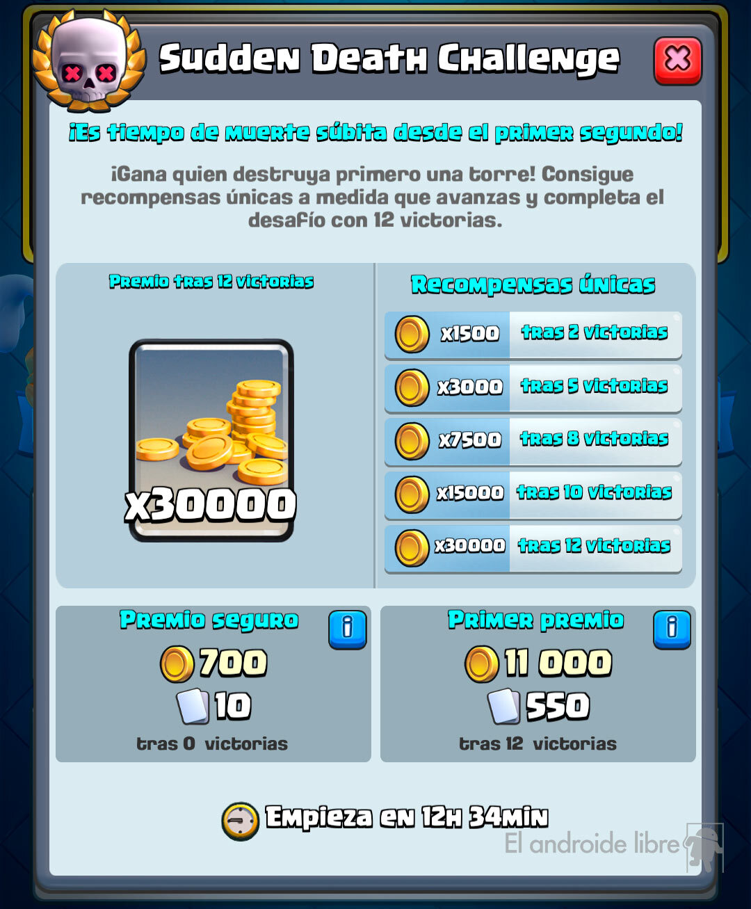 Clash Royale estrena nuevo desafío este fin de semana con las reglas de la muerte súbita. ¿Que significa? Que gana quien primero tumba a una torre. Y el premio es suculento…