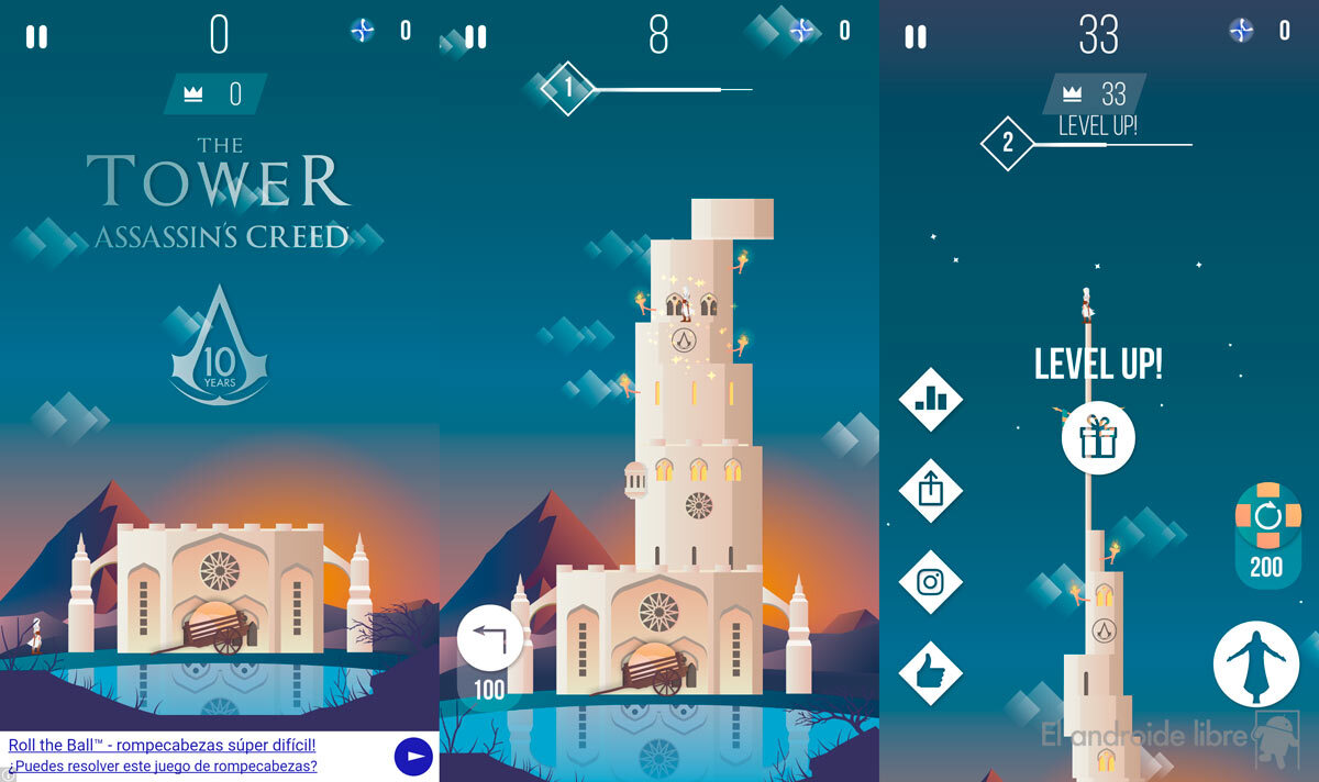 El décimo aniversario de Assasin's Creed también se celebra en Android: Ketchapp adapta su juego The Tower a la temática de Ubisoft. Ojo, muy adictivo.
