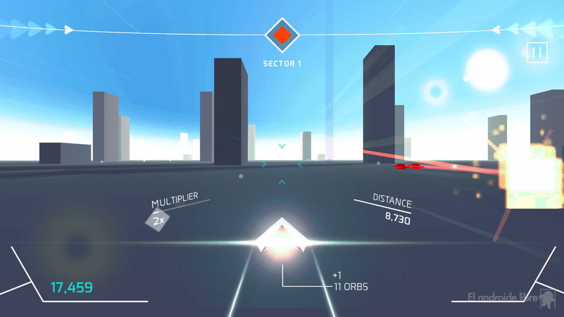 Como todo endless runner este es un juego en el que tenemos que avanzar todo lo posible sin morir ya que no hay un final predefinido aunque sí iremos pasando sectores. Y podemos hacerlo de manera rápida si nos estrellamos.