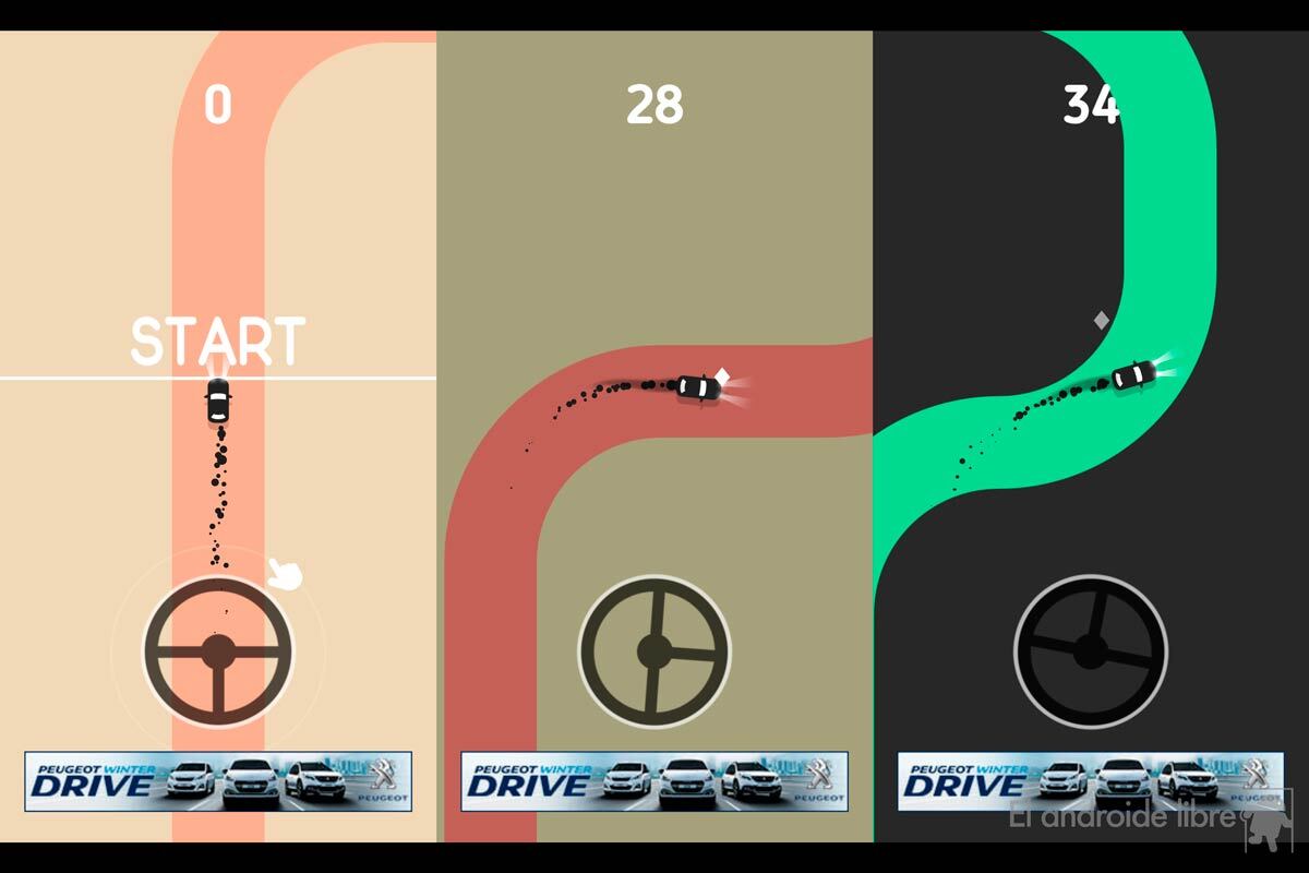 Imagina que tienes un coche dentro de una pequeña pista que fluye a lo «endless runner». Tú conduces el coche con gestos sobre la pantalla, pero no trazando el camino sobre la carretera, eso sería demasiado fácil: debes girar el volante. Parece sencillo, pero es de los juegos más difíciles a los que te vas a enfrentar.
