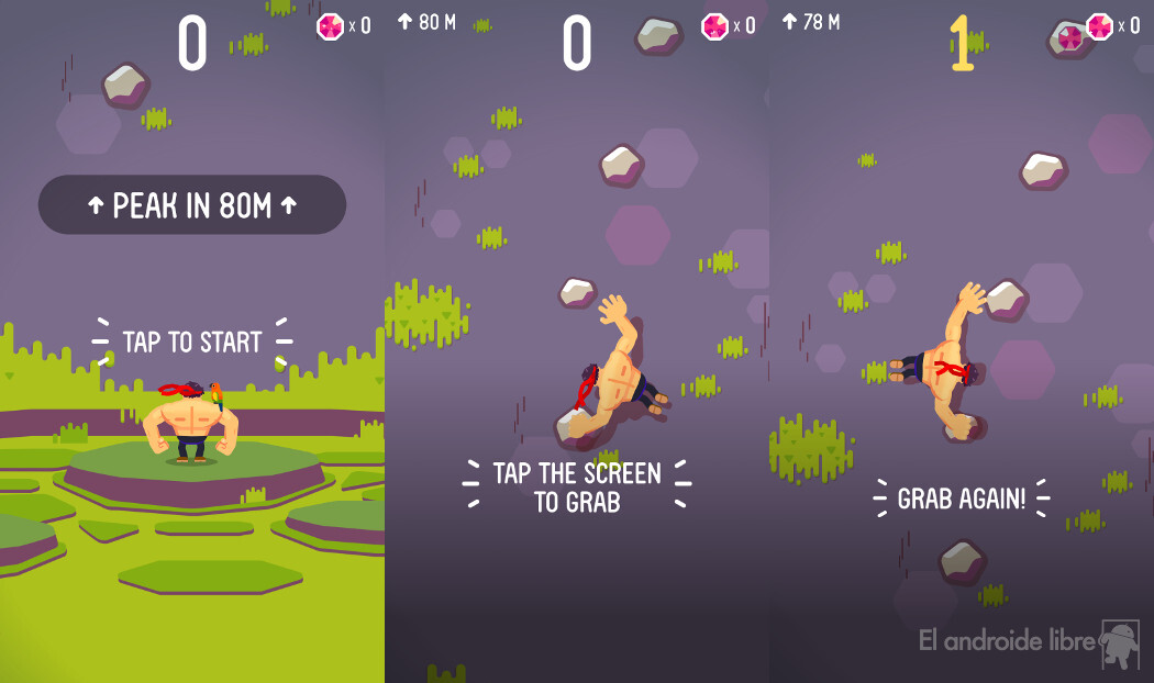 Rocky Climb, no obstante, sigue todas las pautas del juego clásico de Android. Tenemos publicidad que nos servirá para avanzar, un tipo especial de moneda que sólo conseguiremos o jugando mucho o pagando y unos cosméticos para darle otro aspecto a nuestro forzudo.