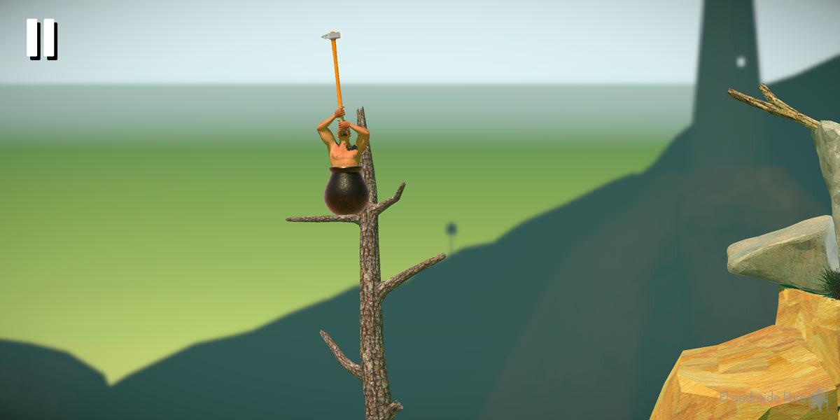 Deslizando el dedo por la pantalla trasladamos el movimiento al personaje. Podemos darnos impulso si apoyamos el martillo contra el suelo y pegamos un empujón, por ejemplo. Y podremos subir al árbol elevando el martillo por encima de la cabeza para utilizar la rama superior como soporte. Eso sí, para controlar los movimientos hace falta una enorme pericia. Imagina lo que se necesita para escalar la escarpada montaña.