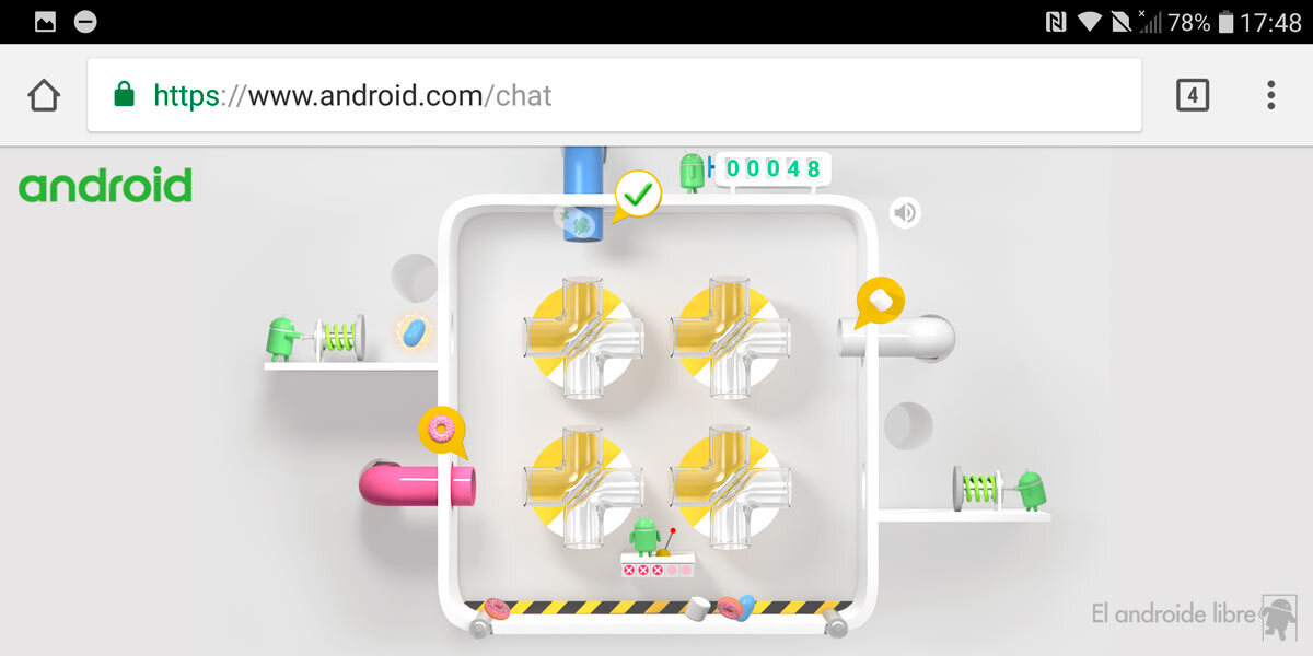 La página web dedicada a la futura aplicación "Chat" esconde un juego muy divertido: conecta tuberías para dirigir correctamente las versiones Android.