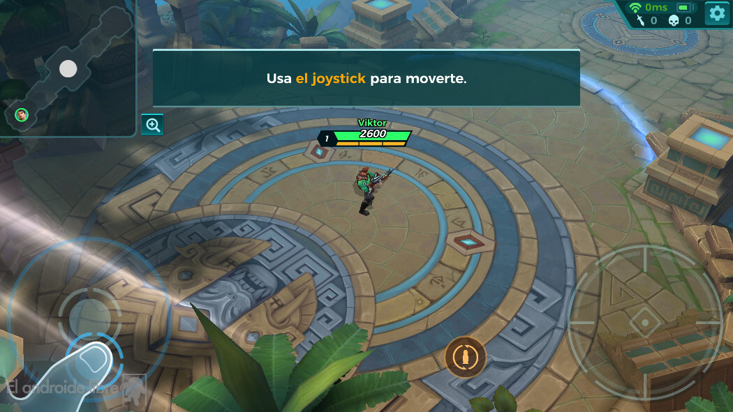 A medida que vayamos subiendo de nivel, desbloquearemos talentos y ayudas para nuestro combate que definirán el rol de nuestro personaje (al igual que el LoL). Las habilidades tienen un ratio que veremos en pantalla y que podremos controlar con un botón de disparo y un botón que hace la suerte de joystick.