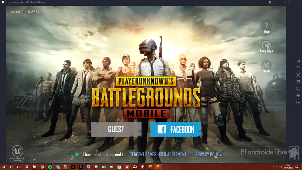 Tal y como ves en pantalla, puedes jugar en tu ordenador al PUBG de Android. Hay varias cosas a tener en cuenta que ya hemos mencionado; que PUBG Mobile en esta plataforma está en beta y sobre todo puede que no seas capaz de jugarlo, ya que en algunos ordenadores no ha podido ejecutarse.
