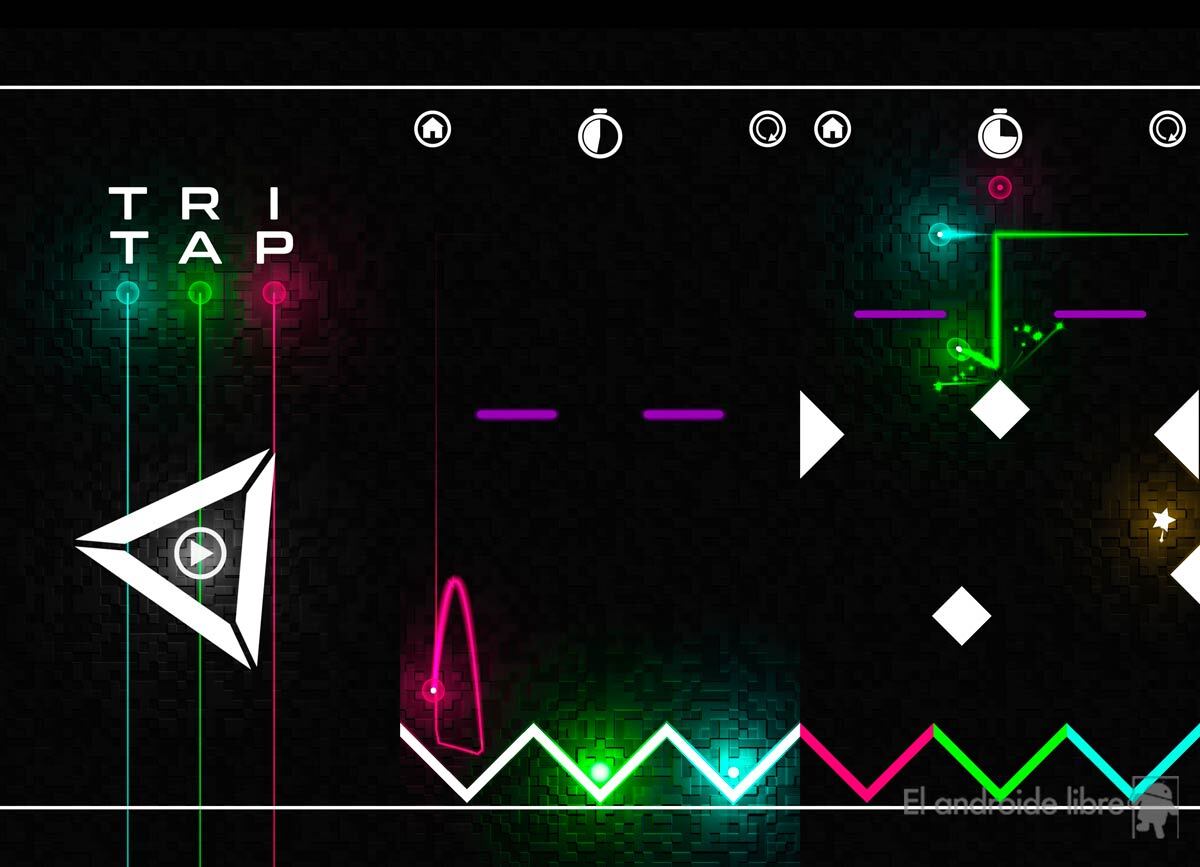 Tritap está disponible en la Google Play Store de forma gratuita. Eso sí, posee anuncios dentro del juego que saltan en los reinicios de nivel y también cuando avanzamos de pantalla. Está creado por Astro Raiders, una compañía de desarrolladores española afincada en Barcelona. Y posee una opción de pago que puede ser tuya por 1,99 euros (como app aparte y como compra dentro del juego gratuito).