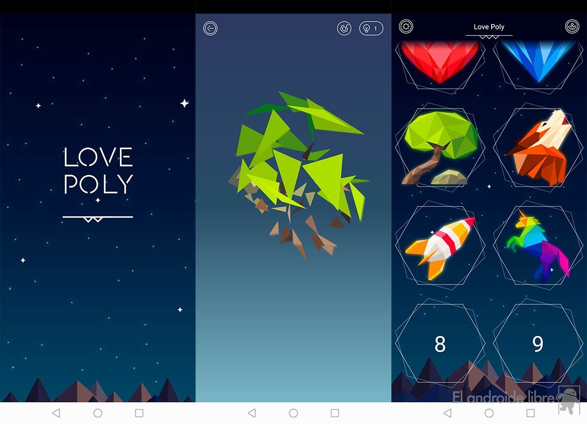 Love Poly es uno de esos juegos a los que siempre apetece jugar un rato. Relaja, entretiene, embelesa a la vista y se puede disfrutar sin coste. Posee anuncios, pero no molestan. Y puedes eliminar dichos anuncios, ganando opciones añadidas, con diferentes compras in-app. Te lo recomendamos.