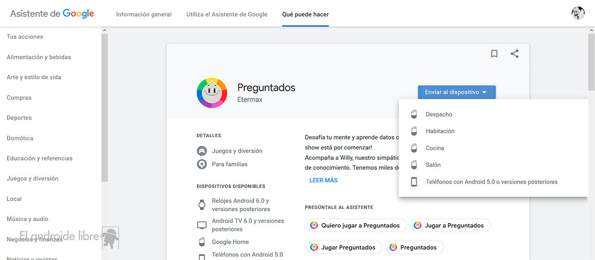 Ahora podemos usarlo en el asistente de Google, tanto en el móvil como en los altavoces inteligentes. Esto último es más útil ya que en el móvil podemos jugar con la aplicación normal.