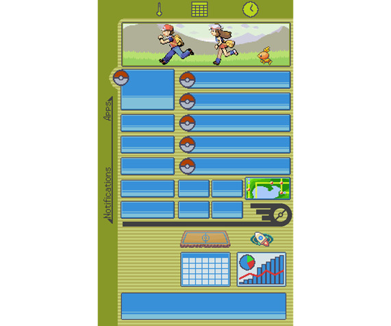 • Opción 2: Bajaros una fuente de pokemon o gameboy y tal y como expliqué aquí, cambiar las fuentes del minimalistic Text. Luego, ir añadiendo widgets de texto.