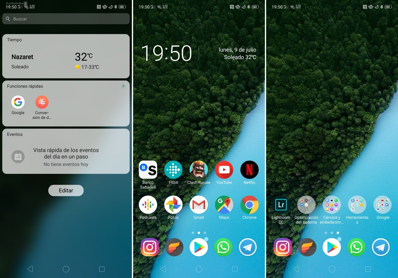 Como último, podemos tener en el lado izquierdo del launcher un panel con algunos widgets propios del fabricante. Este menú se parece al menú de widgets de iOS, y no es el primer fabricante Android que lo incluye en lugar del feed de Google.