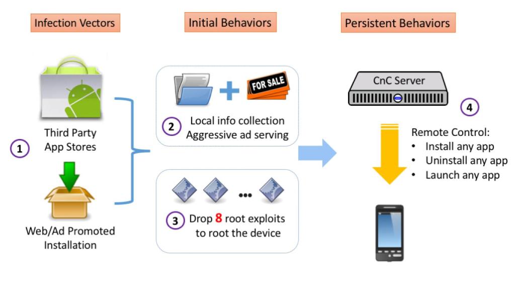 Pero Kemoge no se frena ahí, sino que además aparentemente las aplicaciones tratan de aprovecharse de hasta ocho exploits comunes de root para penetrar en el sistema, algo que les podría permitir tomar su control. Aunque no está claro hasta qué punto lo logra, esto podría hacer que eliminar el software malicioso fuese mucho más complicado.