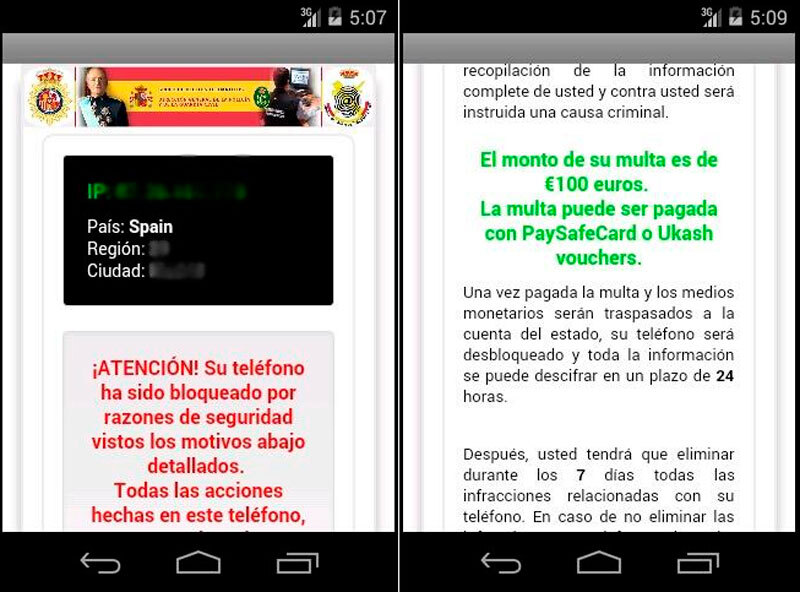En cualquier caso, siempre vamos a tener un denominador común, la solución: nos hacen pagar una «multa» de una cuantía determinada, siempre pagada a través de tarjetas prepago como PaySafeCard o Ukash, para desbloquear el teléfono y darnos tiempo. A veces incluso nos harán pagar con Bitcoin, aunque esto es más rebuscado.
