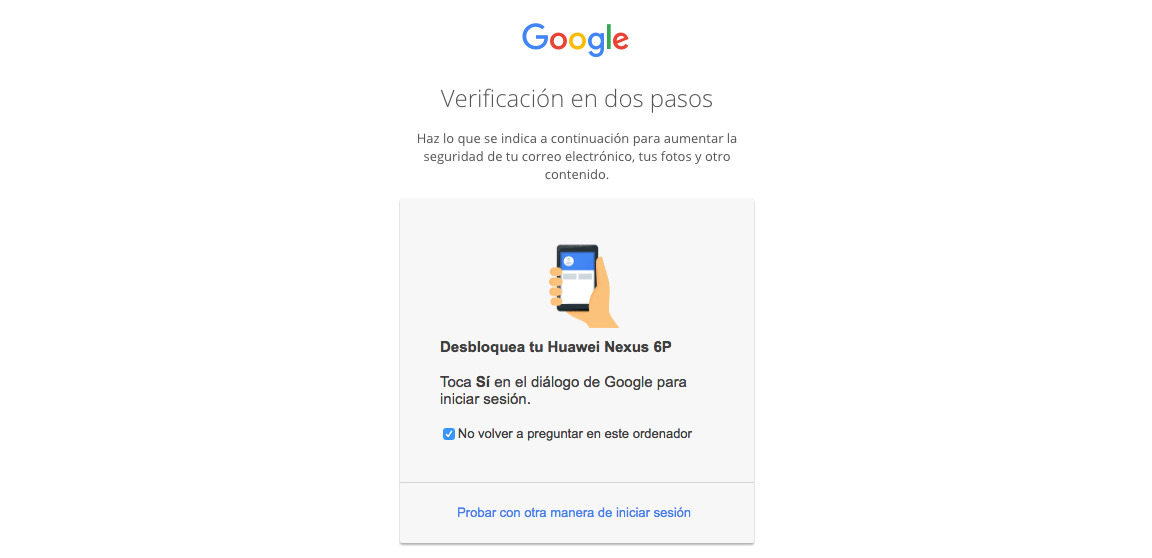 Desde hace algunas semanas, Google también ofrece un sistema similar para acceder a nuestra cuenta desde nuestro teléfono sin necesidad de introducir nuestra contraseña en el ordenador, simplemente confirmando el inicio desde nuestro smartphone. En este caso no es un sistema alternativo para acceder a nuestra cuenta, sino una capa extra de seguridad (que desde aquí os recomendamos activar).