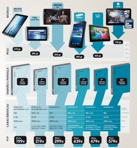 Tal cual comienza el catálogo «bomba» de The Phone House. Con una explicación de lo que es una tablet, y una infografía sobre la diferencia (y evolución) de las tablets Android. Desde la Archos 10 a la Motorola Xoom, pasando por la HTC Flyer o la Samsung Galaxy Tab.