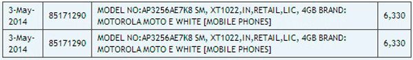 Esta vez se trata de una filtración que llega desde Zauba, donde aparece el Moto E en color blanco y con un precio de 6330 rupias, lo que traducido a dólares serían 105$, alrededor de 80€.