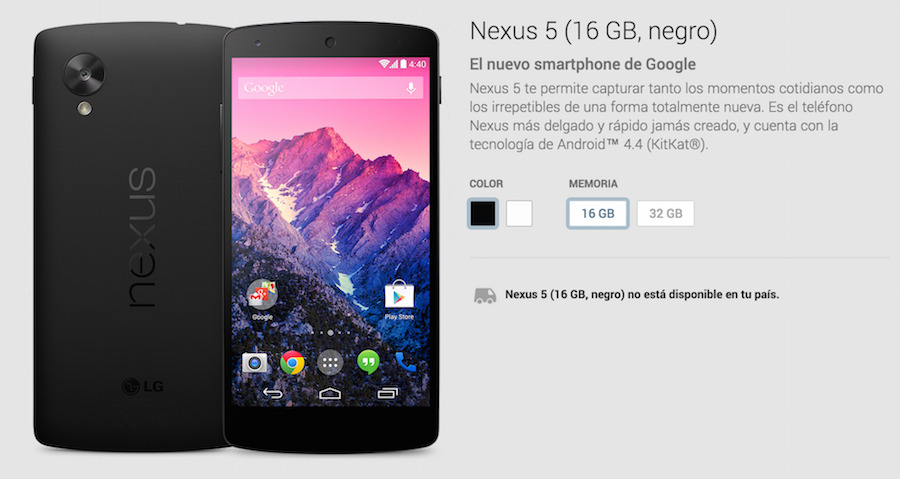 ACTUALIZACIÓN: TheVerge contradice la información proporcionada por TechRadar y asegura que el Nexus 5 seguirá vendiéndose de nuevo durante el primer trimestre de 2015. De momento en España únicamente hay disponible unidades en color blanco y 32GB.