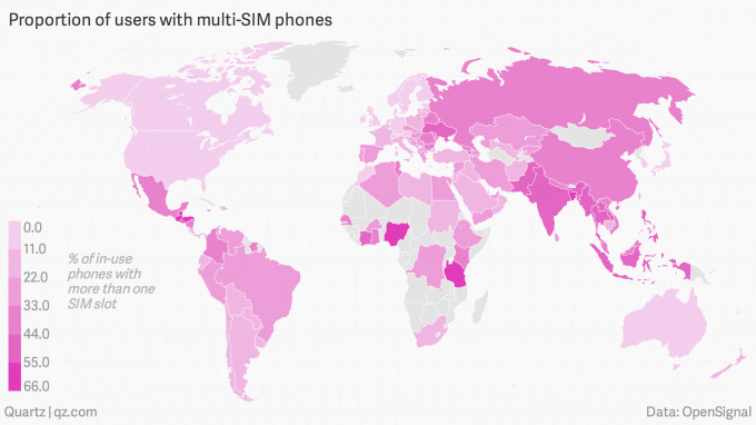 ¿Por qué esa diferencia? Básicamente allí todos se consiguen mediante un contrato telefónico y subvencionado, por lo que a las operadores no les interesa que un mismo móvil sea utilizado por dos personas. Pasa lo contrario en mercados con menos recursos, donde los usuarios prefieren móviles Android low cost y sobre todo comprarlos libres, y a tenor de la estadística, con DualSIM para poder compartirlos.