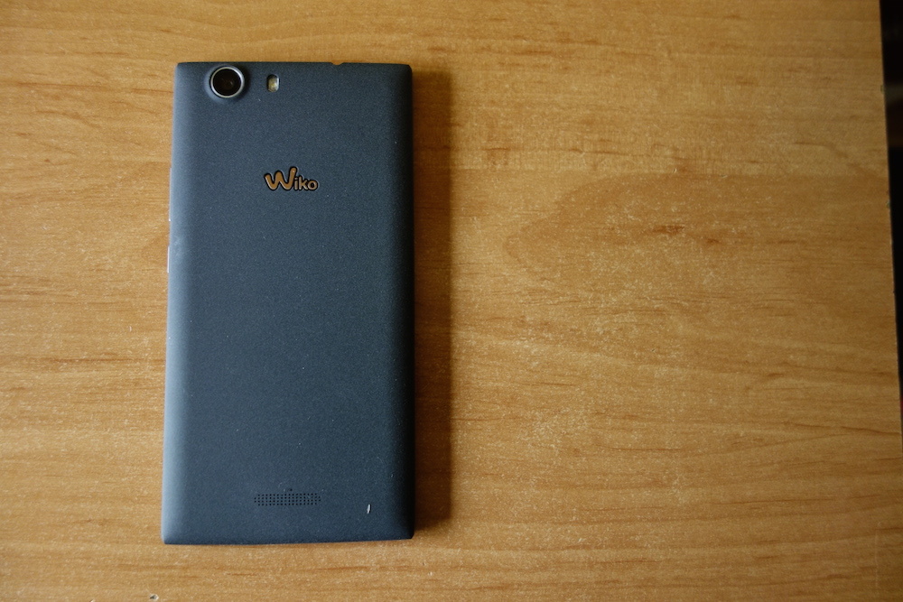 El microUSB los encontraremos abajo en el lado derecho mientras que el minijack de 3.5mm en la parte superior. Si nos vamos a la parte trasera rugosa tenemos el flash LED, la cámara trasera que sobresale ligeramente, el símbolo de Wiko en letras metálicas y el altavoz en la parte trasera. El sonido que ofrece este último entra dentro de lo normal, teniendo en cuenta que se encuentra en la parte trasera no podemos esperar grandes resultados. Eso sí, se añade una minúscula pestañita para levantar mínimamente el terminal y que el sonido no quede tapado del todo.