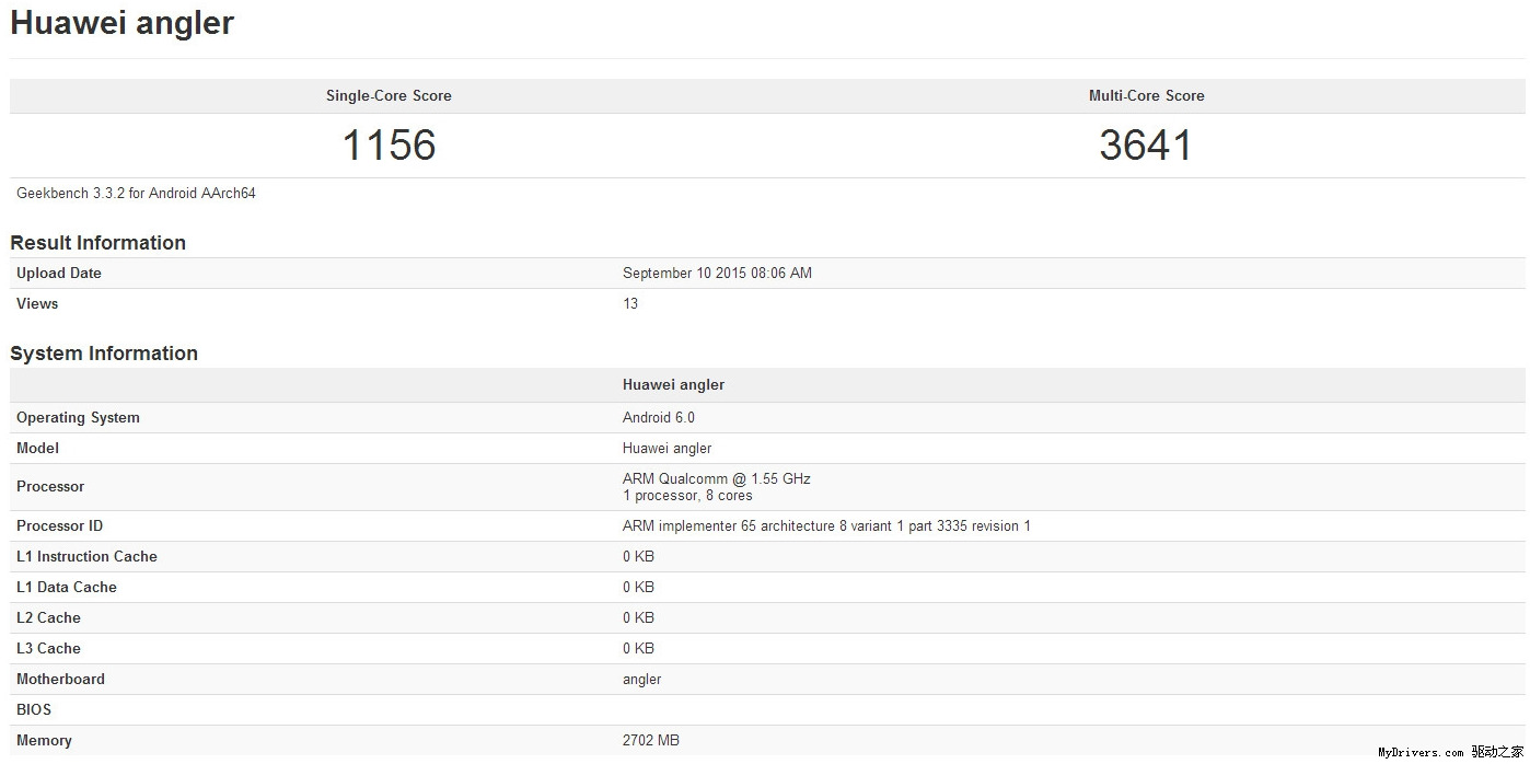 Bajo el nombre ne clave Huawei angler, el test ha revelado que va equipado con un Snapdragon 810 de ocho núcleos a 1,55 GHz una GPU Adreno 430 y 3 GB de RAM. El terminal ha logrado una puntuación de 1156 con un sólo núcleo, mientras que en el test multinúcleo ha llegado a los 3641, algo superiores a las logradas por el Nexus que prepara LG, que llegó a los 1082 con un núcleo y a los 3298 multinúcleo.
