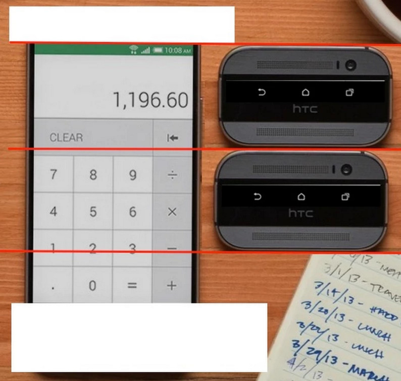La franja negra fue motivo de múltiples disputas desde hace años. Fijaros en la imagen que nos ofrecía Paolo en su día, un HTC One M8 donde la franja negra, los bordes y la botonera de Android ocupan más de un tercio del equivalente de la pantalla en el móvil. Una optimización ridícula, sobre todo teniendo en cuenta que otros fabricantes han hecho auténticos avances en este campo.
