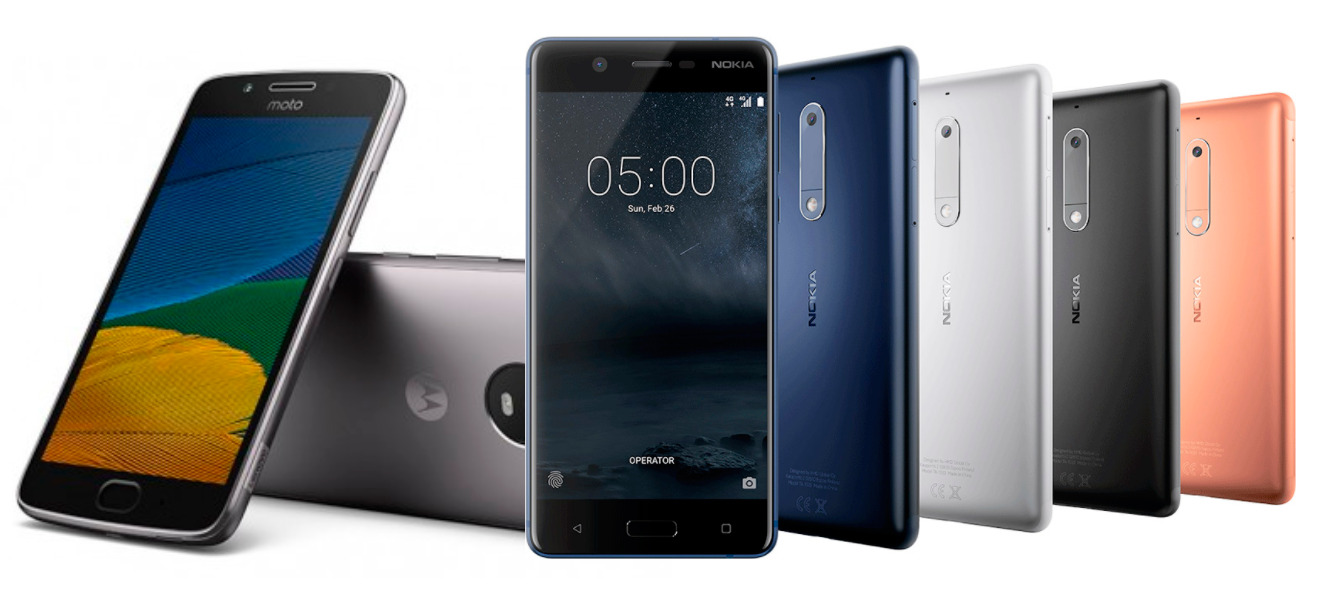 Tanto Nokia como Motorola, dos viejos rivales, han estado presentes este Mobile World Congress con móviles que rondan los 200 euros: Nokia 5 y Moto G5.