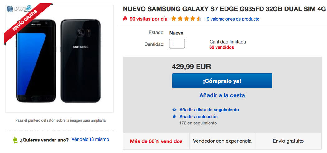 Ya sabemos que el mejor momento de comprar un móvil de gama alta es cuando sale la generación superior. Esta premisa se cumple siempre con los smartphones de Samsung, las ofertas de eBay son una buena prueba de ello: el Samsung Galaxy S7 Edge de doble SIM por 429,99 euros. Vendedor garantizado y posibilidad de devolver el móvil en las dos semanas siguientes tras recibirlo si no estás satisfecho.