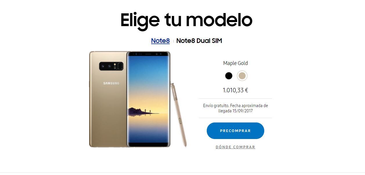 Apenas ha pasado una hora desde que acabara la presentación del Galaxy Note 8 para que las tiendas comiencen a anunciar su disponibilidad. Ya podemos comprar el Galaxy Note 8, o al menos en estado de preventa.