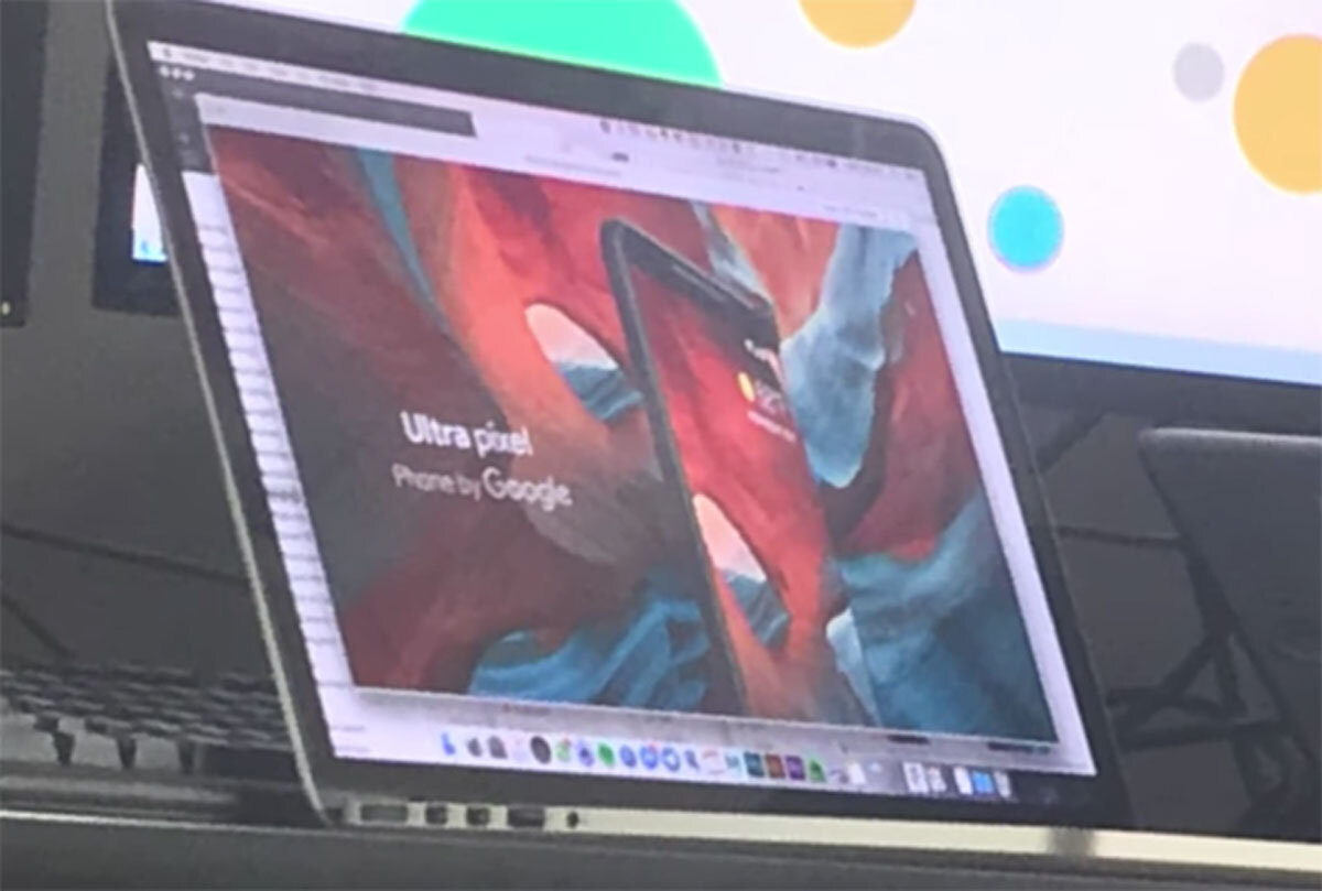 Os dejamos las diapositivas clave en las imágenes de este artículo. En ella podemos ver varias imágenes en un portátil que muestran imágenes promocionales de un dispositivo llamado Ultra Pixel. No sabemos muchos detalles sobre el dispositivo, aunque quizás se trata de una versión del Pixel 2 hecha para competir contra el iPhone X.