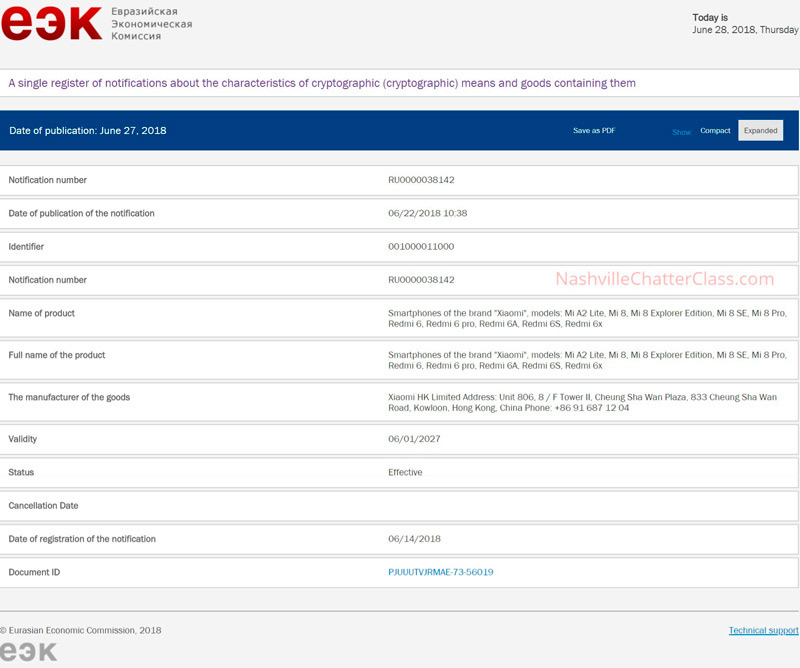 La Eurasian Economic Commission (EEC) ha certificado varios modelos de smartphones de la compañía china. Este organismo es el encargado de certificar los dispositivos electrónicos en países como Armenia, Rusia y otros.