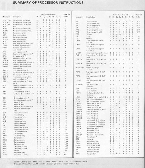 Conjunto de instrucciones de un Intel 8080 (Fuente: VirtualAltair)