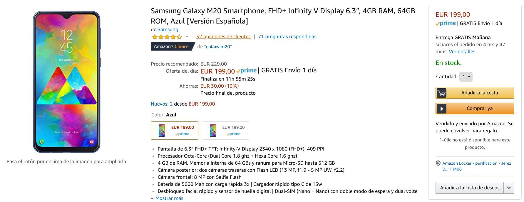El Samsung Galaxy M20 al precio más bajo: 199 euros