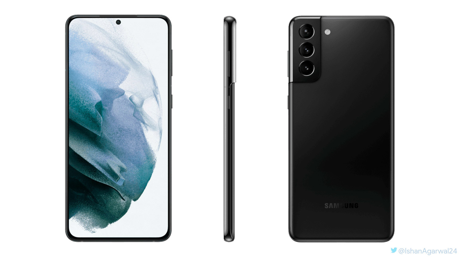 El modelo más barato que podremos comprar en España estará disponible en morado, rosa, blanco y negro. También se ha filtrado la imagen en negro del Samsung Galaxy S21+, que parece que no tiene ninguna diferencia visible además del tamaño.