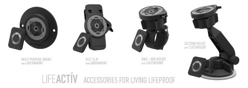 Por si no tenéis suficiente con la batería sumergible que os podéis llevar al fin del mundo, LifeProof también ha presentado una serie de accesorios para llevar dispositivos en todo tipo de situaciones: sujeciones para bicicletas y motos, soportes para coches, cristales, paredes y espejos… para cualquier uso que se os pueda ocurrir, en realidad, y todos con montura rápida.