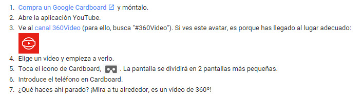 A día de hoy hay aplicaciones interesantes en Google Play aunque no destaca ya que pocos, aunque los hay, apuestan por estas aplicaciones. Es por esto que Google ha querido demostrar aún más su apoyo hacia estas tecnologías lanzando vídeos que podremos ver como si estuviésemos allí. Es decir, ponemos el vídeo, colocamos el dispositivo en la Cardboard y si giramos la cabeza, gira la vista de la cámara del lugar.