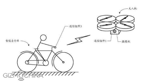 En otra de los bocetos podemos ver al usuario en bicicleta con el dron sobre su cabeza. Es posible que haya comandos para controlar el dron desde un vehículo, o simplemente que permitan a este seguir a su dueño a través de la señal de las Mi Band y grabar video de lo que esté haciendo en cada momento, algo muy conveniente para quienes quieran grabarse realizando deporte. Esto sea probablemente la aplicación más práctica de esta patente.