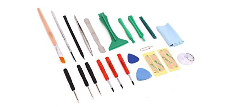 iFixit es la empresa de referencia en el mundillo de la reparación de móviles. No solamente tiene completas guías para arreglar cualquier tipo de dispositivo electrónico, sino que también distribuye las herramientas necesarias para arreglar los teléfonos. El pack de herramientas que vende por 23,95 euros en Amazon es ideal para los móviles, e incluye: