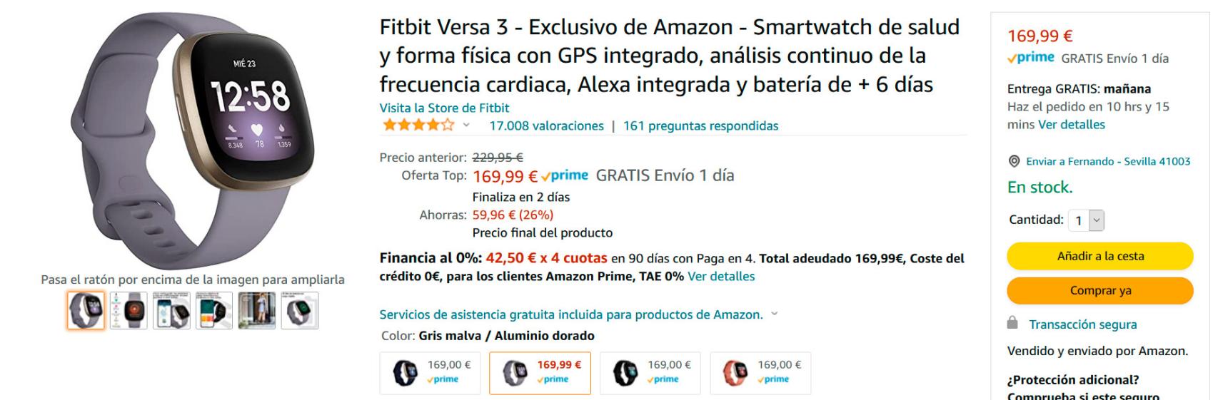 El Fitbit Versa 3 baja de precio a lo bestia en Amazon España