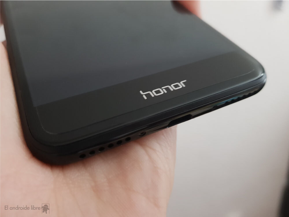 El logo de honor en plateado adorna la parte inferior del frontal mientras que el auricular de llamadas hace lo propio en la superior.