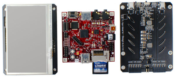 Se trata del pack «háztelo tú mismo» de Liquidware, que contiene una pantalla OLED táctil resistiva de 4,3 pulgadas (no es lo más grande, pero es interesante) y resolución 480 x 272 (muy buena para este tamaño de pantalla), una placa BeagleBoard con procesador OMAP 3530 ARM Cortex-A8 de 720MHz (tres cuartos de la capacidad del iPad de marras), 2GB de almacenamiento NAND, y lo más importante, ranura SD (¿el iPad tiene eso?). Viene incluída una tarjeta SD de 4GB con el sistema operativo Angstron Linux listo para ser instalado, pero seguro que un amable desarrollador le gustaría sacar alguna ROM de Android para los que lo compren.