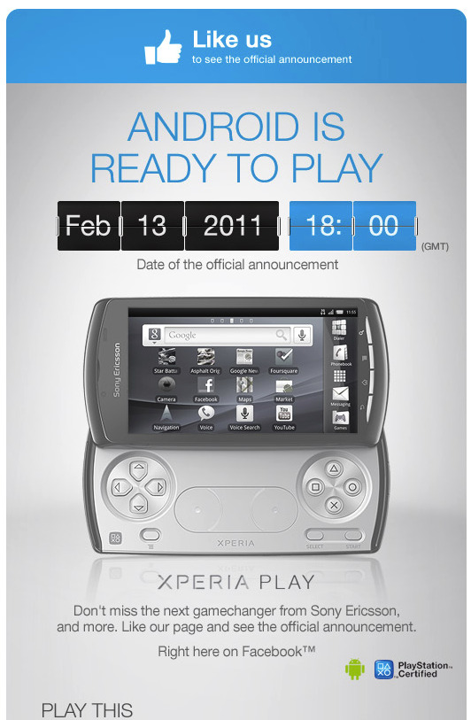 Presentación Oficial del Xperia Play con Gingerbread: 13 de Febrero