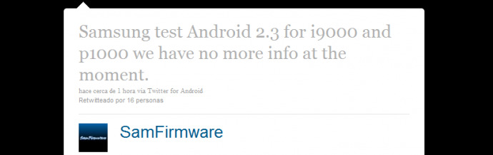 La pieza que faltaba en el puzzle para saber que no queda mucho para ver a la galleta de jengibre en nuestros Galaxy S y en nuestras Tab. Samfirmware ha dicho en Twitter lo siguiente: