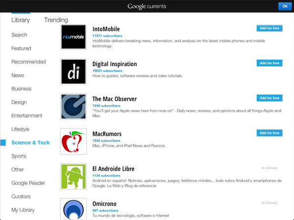 Google selecciona a El Androide Libre y Omicrono en Google Currents como los únicos medios destacados en español