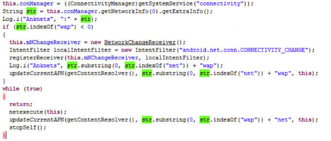 El malware se aprovecha de las debilidades de Mobile Market (M-Market), tienda de aplicaciones de una de las operadoras chinas más importantes del país (con mas de 660 millones de usuarios) para «engordar» las facturas de los usuarios, ya que la facturación en esta tienda de aplicaciones se realiza a través de la factura de la linea. Además consigue saltarse las verificaciones de usuario (en este caso son un SMS con un código de verificación y en algunas ocasiones un Captcha) y se aprovecha de vulnerabilidades como, por ejemplo, que no te pide un inicio de sesión si se trabaja con una APN en concreto. Así trabaja el malware: