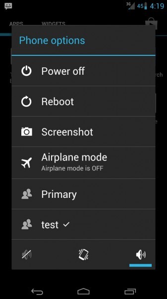 Básicamente lo que hace es escribir un comando en el emulador para crear el usuario, sin más. Tras esto, al presionar el botón de apagado, nos muestra dos usuarios diferentes, el principal y el nuevo que ha creado llamado «Guest». Todo este proceso lo realiza en un Galaxy S3 con una rom CyanogenMod 10, basada en Jelly Bean.