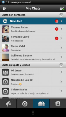 Y por último la posibilidad de compartir un “Status”, un estado personalizado, en forma de mensaje que recibirán todos tus contactos en su Status Feed, una especie de “Timeline” dentro de Spotbros. Una sección que protagoniza una de las renovaciones de Spotbros en su última actualización.