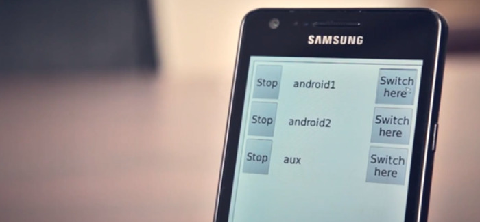 Aquí tenéis una imagen del Samsung Galaxy S2 en la que se muestra la «máquina de virtualización». Se ven tres SO corriendo a la vez y, a la derecha, un botón que permite cambiar entre uno y otro.