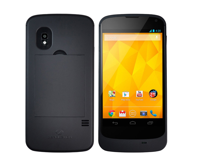 El fabricante de accesorios ZeroLemon ha lanzado una carcasa-batería para el Nexus 4 que dispone además de un hueco para poder intercambiar las baterías cada vez que se agoten para seguir disfrutando del dispositivo. La carcasa está construida de manera que no bloquea ni reduce la cobertura del terminal, tiene un acabado gomoso negro y además protege al teléfono de fuertes caídas y golpes.