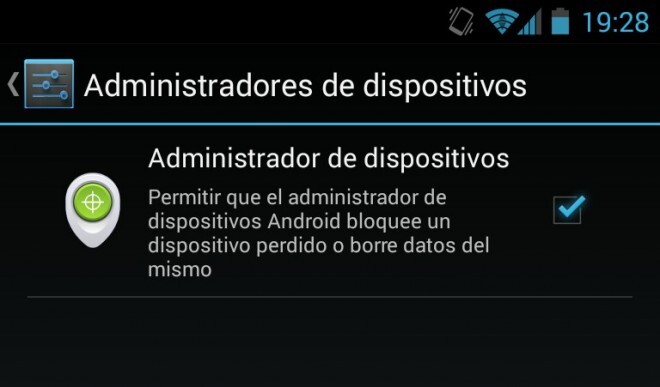 El administrador de dispositivos Android nos permite dos funciones principales, localizar nuestro terminal y borrar sus datos, buenas opciones en caso de pérdida o robo del teléfono. Para activarlas tenemos que ir a Ajustes/Seguridad/Administradores de dispositivos/Administrador de dispositivos y activarlo.